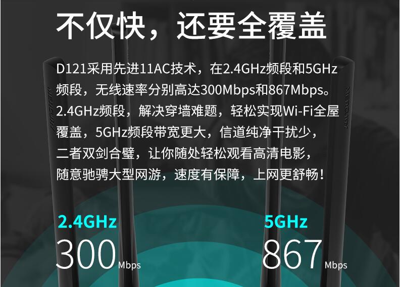 水星無(wú)線路由器家用高速wifi 5G雙頻千兆速率路由器穿墻王大功率增強(qiáng) 百兆端口宿舍學(xué)生寢室D121