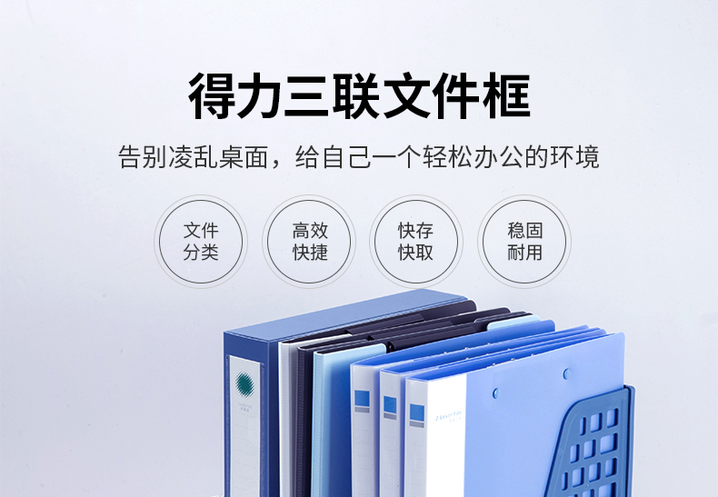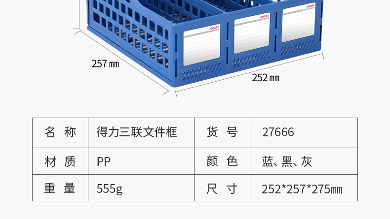 得力(deli)三聯鏤空桌面文件框 三欄帶標簽穩(wěn)固文件欄/文件筐/資料框 黑色